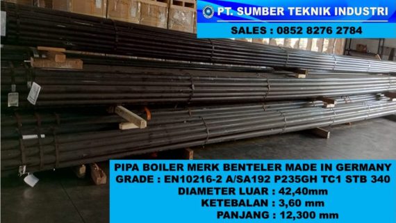 Boiler tube merk benteler standart EN 10216-2 P235GH TC1  Seamless boiler adalah pipa mulus tanpa sambungan yang mempunyai spesifikasi khusus dan digunakan sebagai instalasi pembuatan boiler dimana, pipa ini mempunyai karakteristik tahan panas dan tekanan pada suhu panas banyak spesifikasi pada pipa boiler tergantung kebutuhan. Dimensi pipa boiler berbeda-beda dari segi ketebalan diding pipa dan panjang pipa pada umumnya 7-9-12 meter.Pipa Tube Boiler yang kami supplay bersertifikat dengan standar Eropa dengan menyediakan dengan Grade P235GH TC1, P235GH TC2, SA210, SA 192, SA 179, A213 T22, kami juga menyediakan untuk kebutuhan Pipa Superheater. Pipa benteler sudah banyak di supplay di Indonesia.