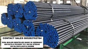 Pipa boiler benteler OD 60 merujuk pada pipa baja seamless (tanpa sambungan las) dengan diameter luar (OD) 60 mm, lebih spesifik biasanya 60.3 mm, digunakan untuk aplikasi tekanan dan temperatur tinggi seperti pada boiler, perpipaan industri, dan transfer energi, dengan grade baja umum seperti P235GH (EN 10216) atau ASTM A192, tersedia dari merek ternama seperti Benteler dan diproduksi sesuai standar internasional untuk menjamin kekuatan dan ketahanan korosi.